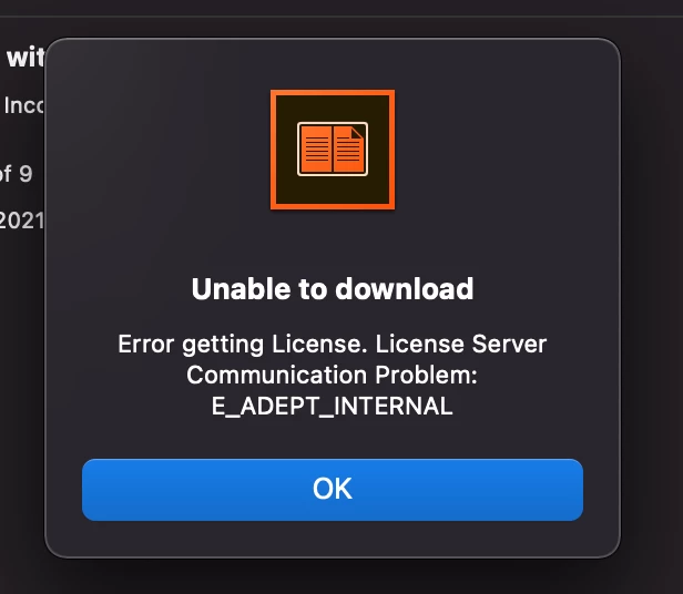 Error getting license - E_ADEPT_INTERNAL