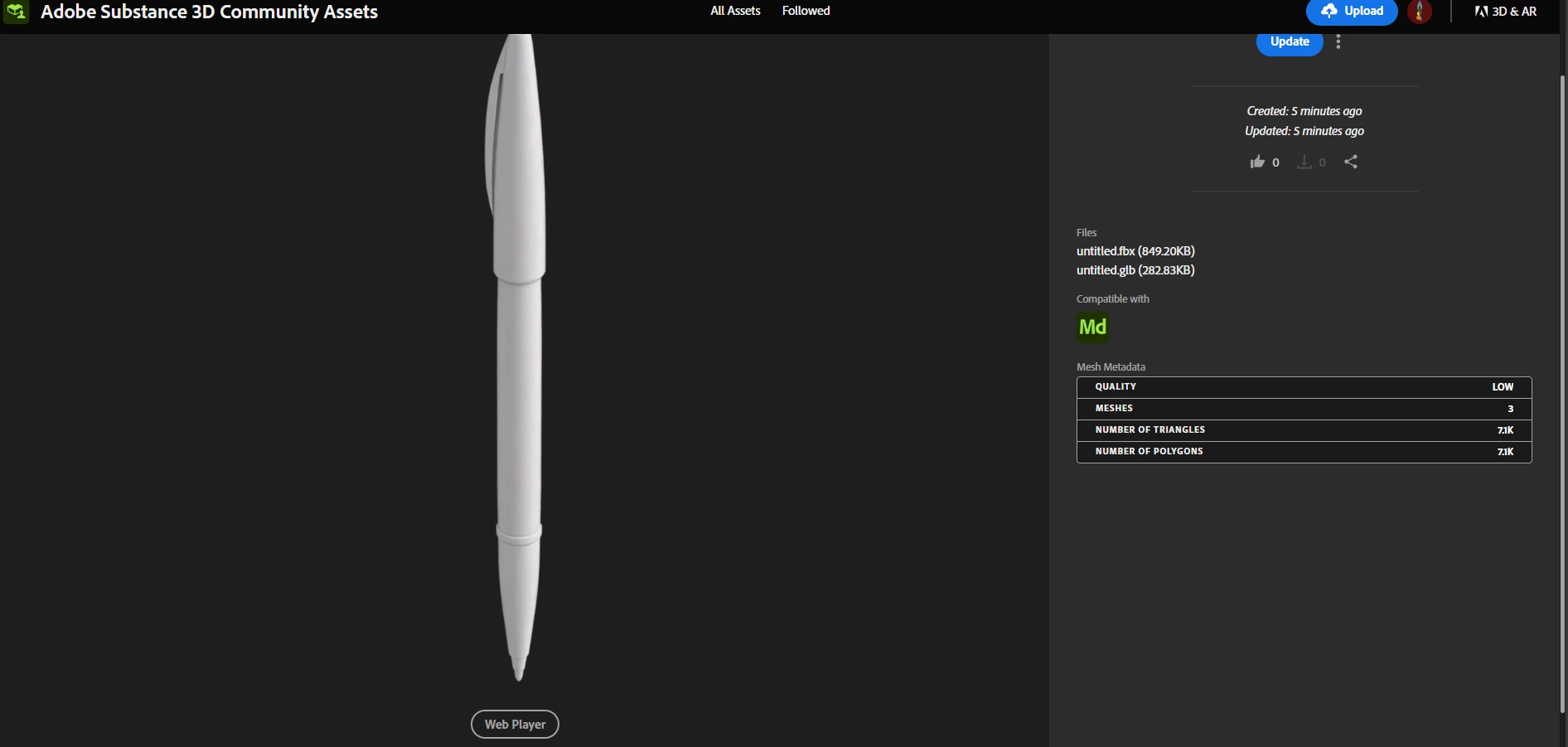 You can upload some 3d file into Adobe Substance Community assets and share the link. There is a web player (button below model) that allows to preview object in 3d environment. Here is screenshot what I get after exporting test assets from Dn (GLB) and upload as my assets.