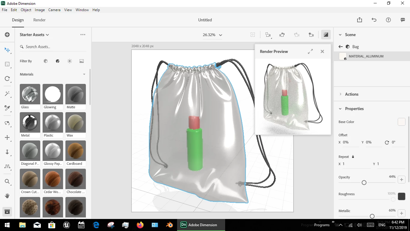 In the Design window playing with this parameter gives me the look I want is rather crudely rendered. However when I do a proper render the wrapper just ends up white opaque.