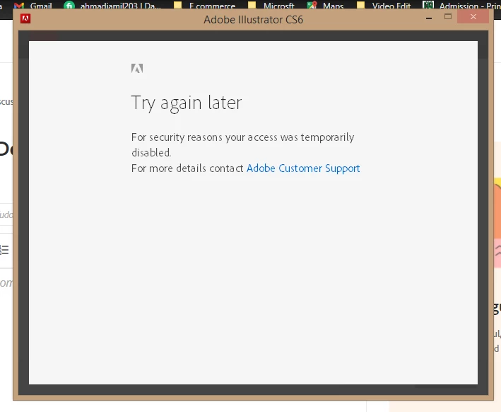 my access was temporary disabled please enabled it because i want to install Adobe illlustrator CS6. i can't installed it.