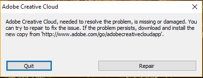 adobe creative cloud needed to resolve the problem is missing or damaged