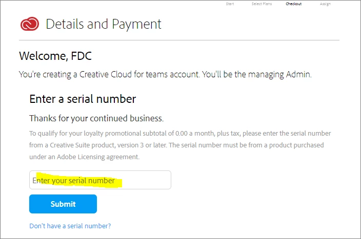 Adobe Creative Cloud [Serial number from Creative Suite required. How to obtain it?]