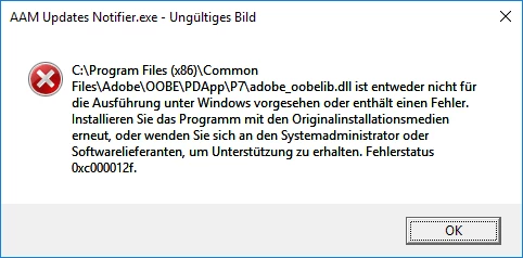 In a comparable post to the adobe_oobelib.dll problem it was recommended to delete all files in the folder ...\local\adobe\oobe. I did so but nothing changed.