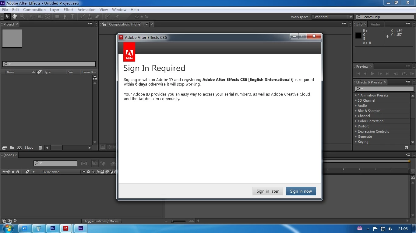 Hello, I came across a landing on Adobe After Effects cs6 problem, very anxious.