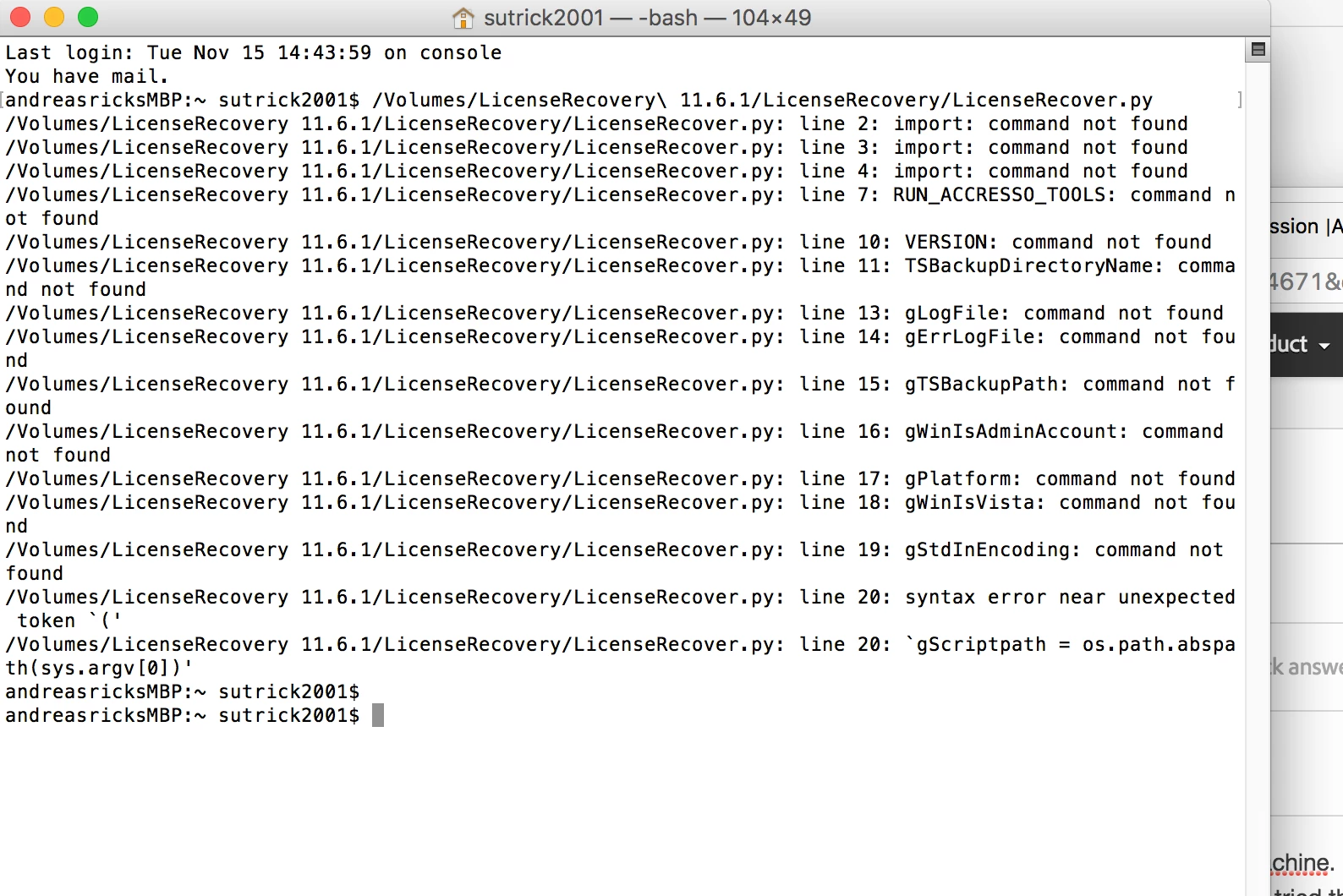 I just purchased a new MacBook Pro 2015 model. I backed up from my last laptop from Timemachine. I am using OS X El Capita version 10.11.6. I cannot get my Adobe programs (Photoshop, Indesign, Illustrator, Acrobat, Bridge) to open. I get error 150:30. I tried this link with no luck (screenshot below): https://forums.adobe.com/thread/1714695