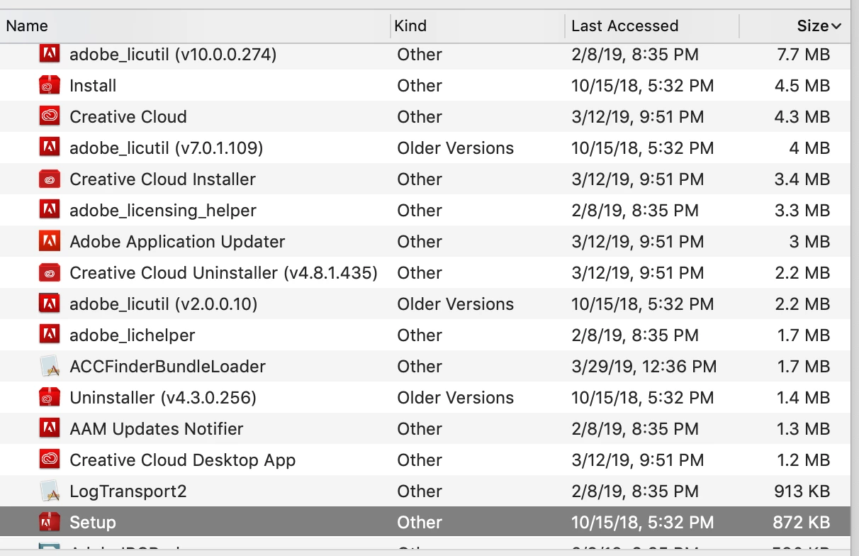 I have a ton of miscellaneous adobe files on my computer that are taking up space on my hard drive (seen in below image), is it alright for me to delete these or will it mess up my Adobe programs? If I can delete some of them, which ones are safe to delete vs. keep? As seen in "last accessed" some of them haven't been used since I downloaded Adobe onto my new computer in October. If I can't delete them, can anyone tell me what they are? Thanks!
