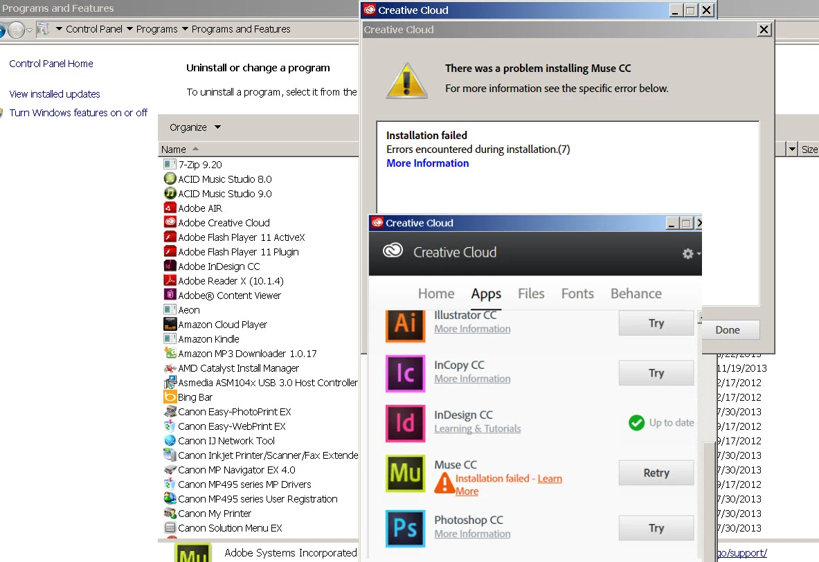 I have used Muse for some time via the monthly CC subscription.  I ran CCleaner and Muse got wiped.  I try and retry to install but each time the "Installation failed."  The blue "More Information" link doesn't work.