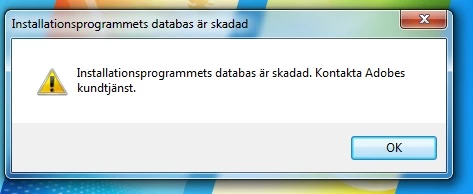 The Installation database is corrupt. Contact Adobe Customer service.
