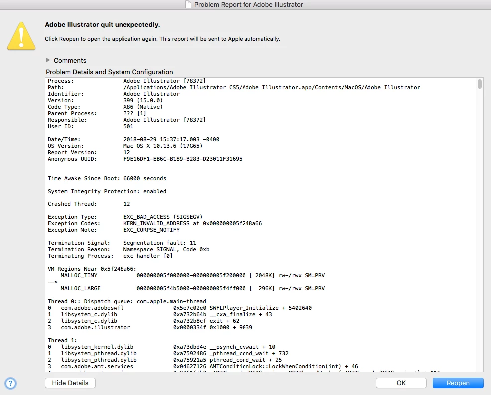This is my first post and it's going to be very direct. I've spent 6 days and countless hours struggling with uninstalling then reinstalling CS3 (the updater NEVER worked correctly) and waiting for Adobe to complete a license transfer for CS5 Design Premium. I also updated my MacBook Pro to High Sierra. Once Adobe finally completed the transfer I tried to install the CS5 upgrade (also Design Premium) and while the first install went okay, I began getting error messages upon opening the first program. "Not optimized" I can live with that one even though it is annoying. When I close a program about 2-3 minutes later I get a crash log that program (take your pick) quit unexpectedly!!! I closed the program minutes before on my own!
