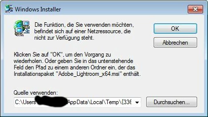 this says that the network resource is not available. I wonder which network resource this would be, as the download had been done to the C drive, no network involved (the same error message on installing and on deinstalling).