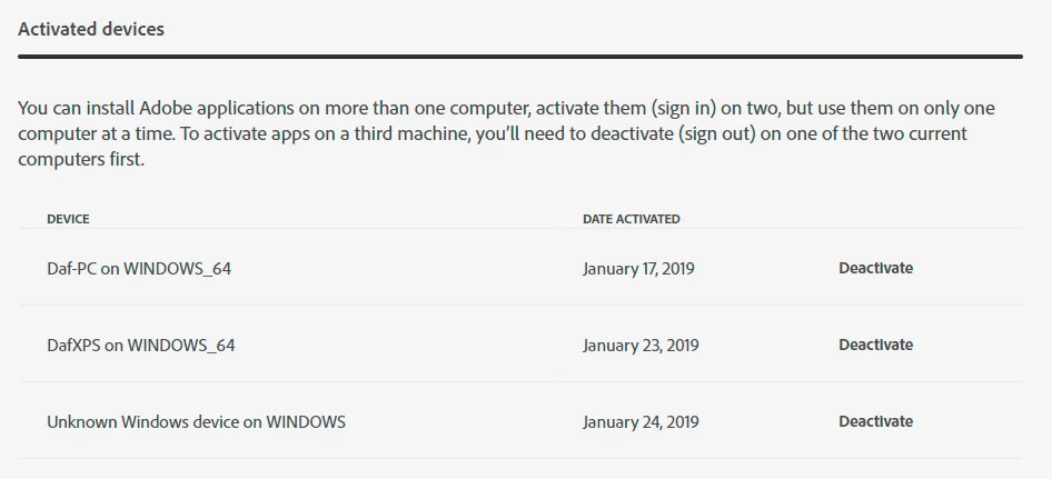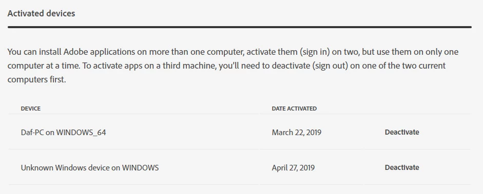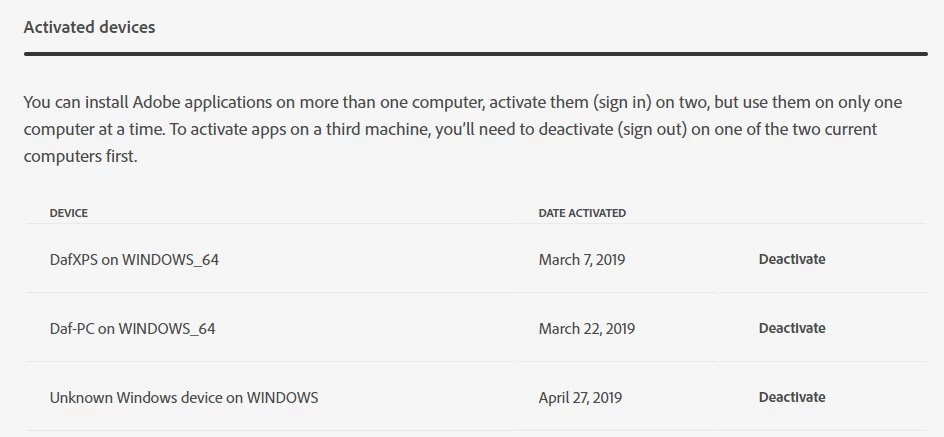 When I Remove BOTH desktop and laptop from my account (as per help instructions) - it usually works for a while BUT then fails again - and it's even worse - the activation limit pop-up shows that 2 activations are taken up ON THE SAME PC!