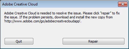"Creative Cloud needed to resolve the issue" error