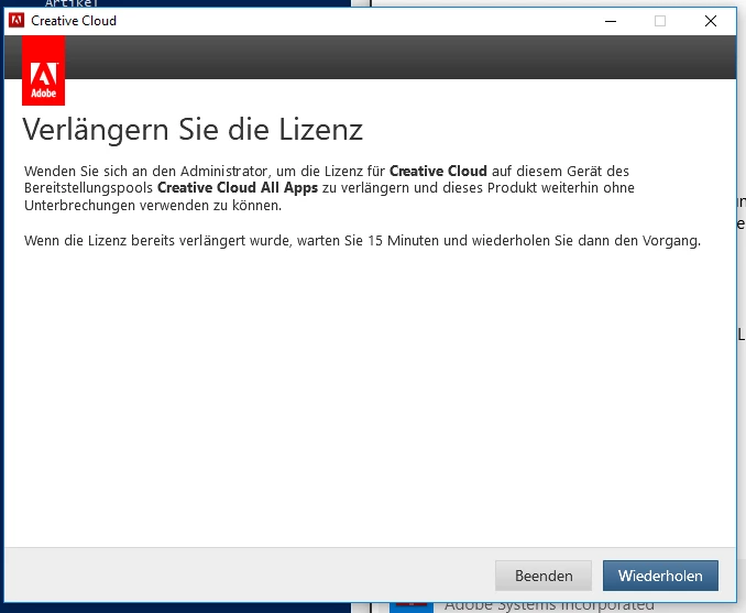 I get “renew your subscription” messages after installing a new client (fresh windows, no prior Adobe installations). There is one device license available and the new client is shown on the team management site deployment pool after the first start of AfterEffects so communication must be ok. I think that there is something wrong with our subscription on Adobes servers because it’s the first new installation after actually renewing our subscription in December 2016 (12 months).