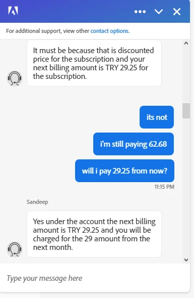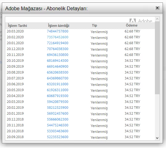 Adobe charged me for 62.68 TRY on 20.02.2020 and 20.03.2020 -> AFTER THE CONVERSATION POSTED. Isn't that simple enough?