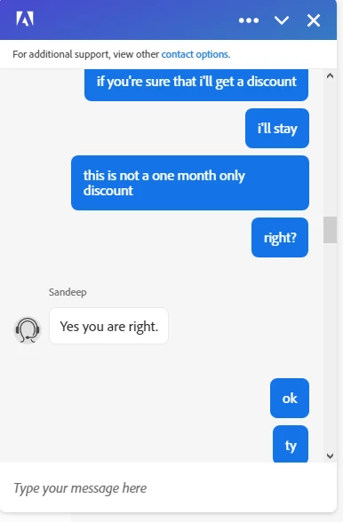 As Adobe value you as a customer and you are with Adobe from past two years and you tried to cancel the subscription online you got the discounted price for the subscription"