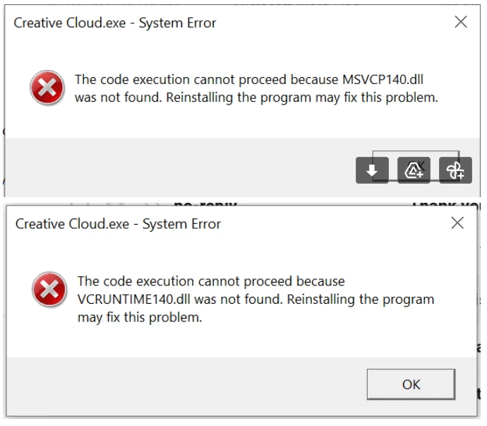 Unable to open InDesign - Code Execution cannot proceed bcoz MSVCP140.dll & VCRUNTIME140.dll not fou
