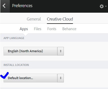 In order to change the install location for CC applications, please go to Preference by choosing Gear icon(Settings button) on the top right corner, then go to Creative Cloud then you may edit the Install Location.