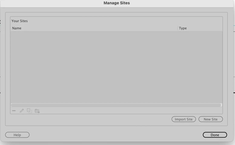 ALSO, the "Manage Site" dialog box comes up empty! It used to be full of the names of my sites.