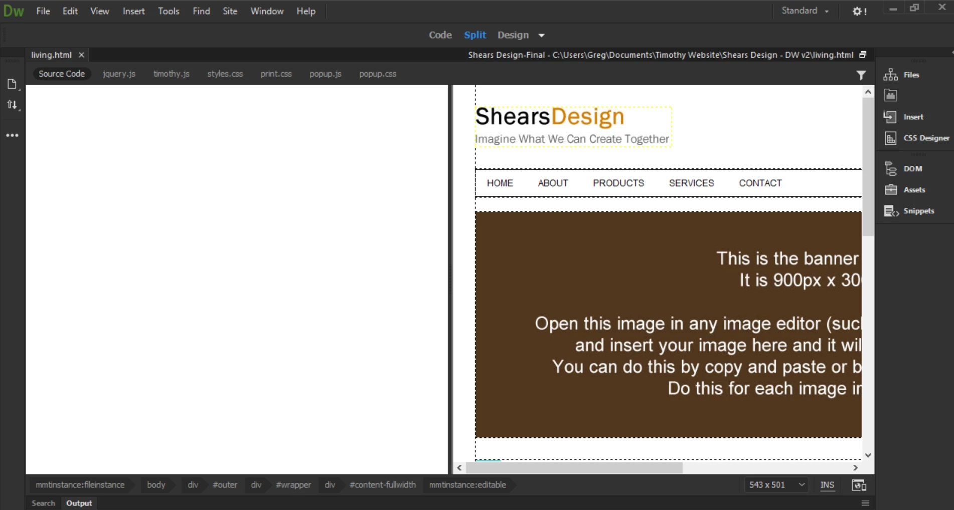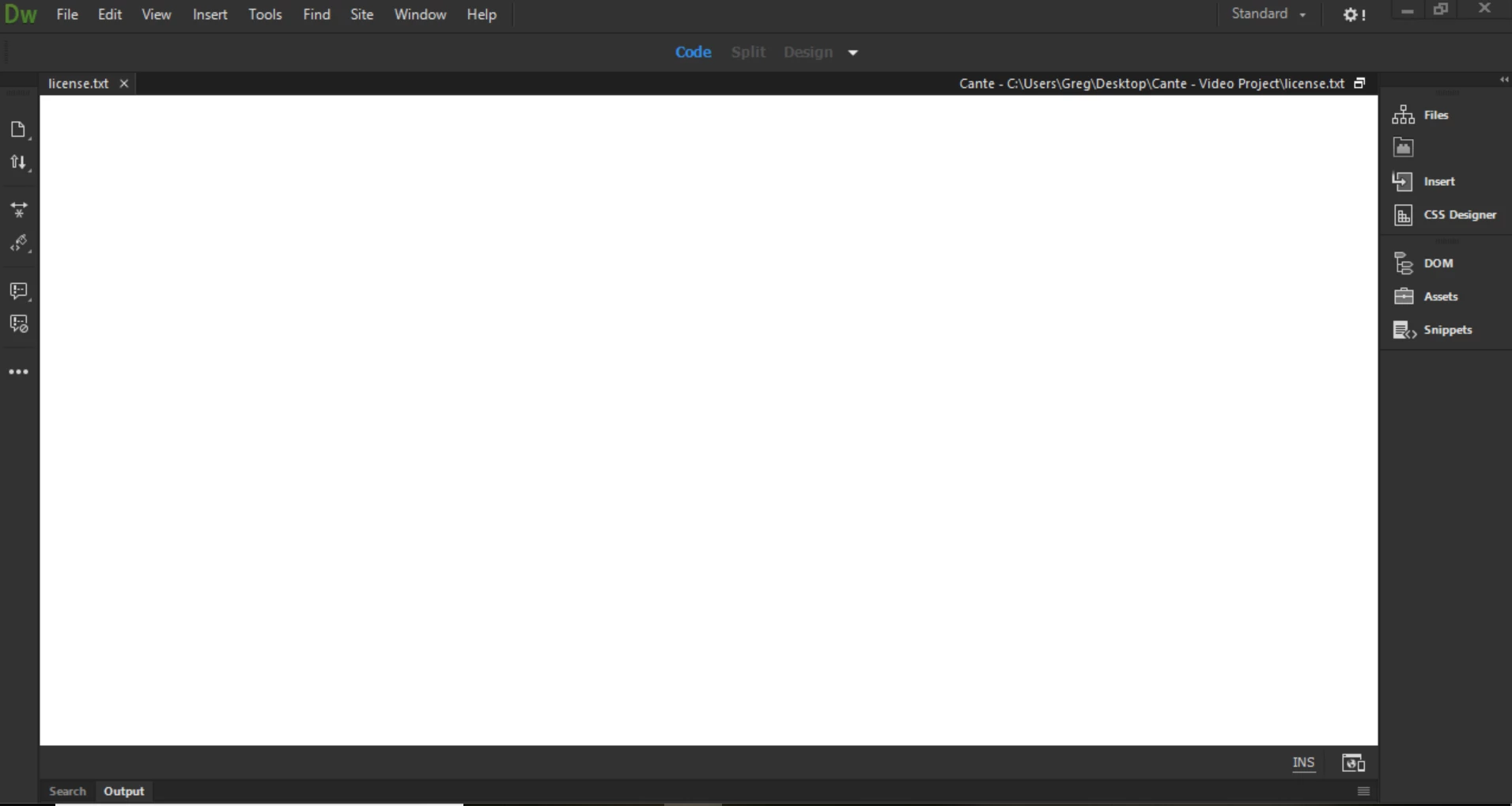 The page below is a full page of text but shows nothing when opening in Dreamweaver