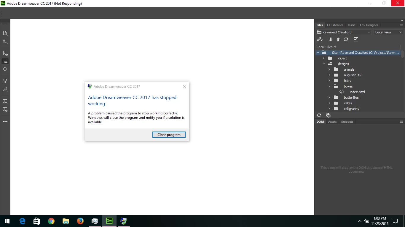 Dreamweaver CC 2017 has stopped working (won't launch)