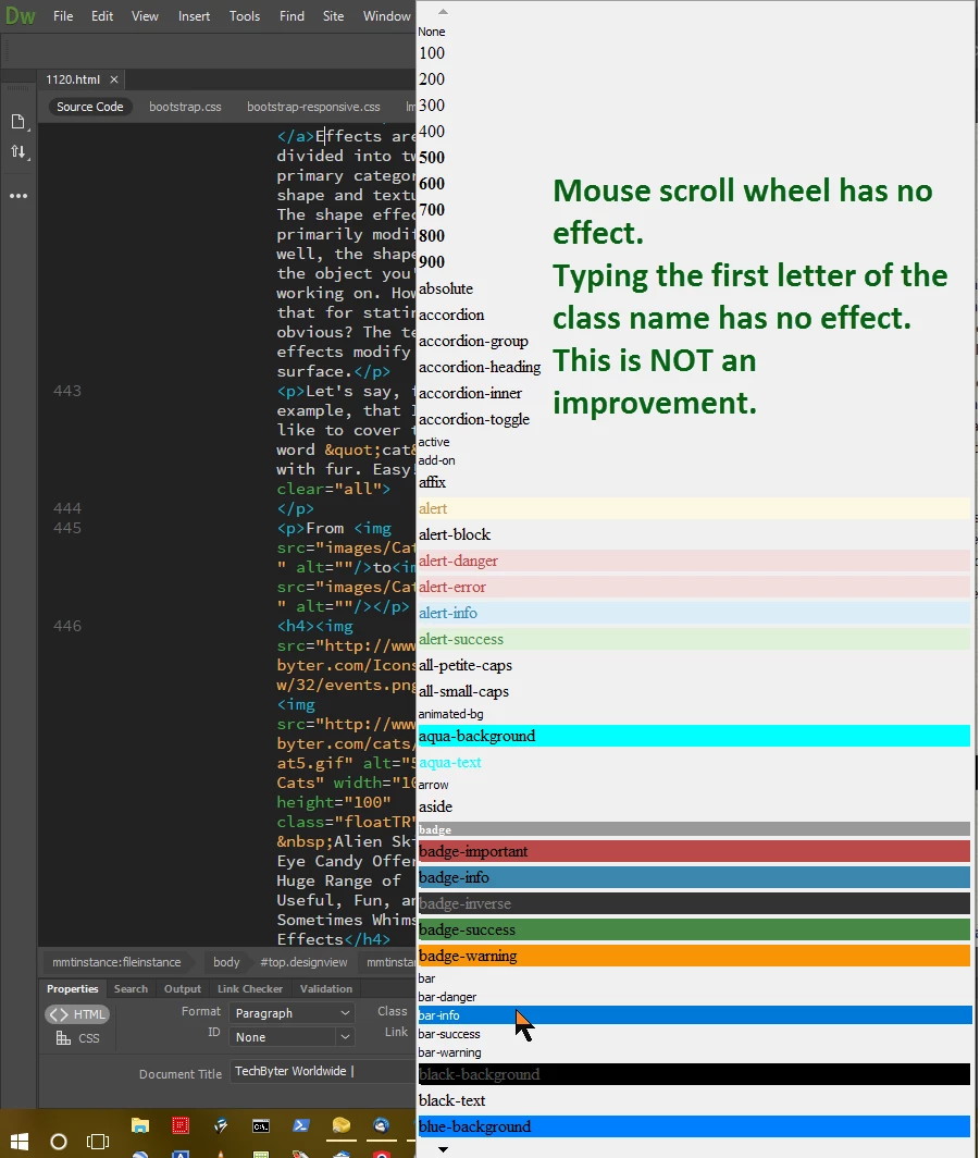 Dreamweaver Class selector no longer works properly in 2017 version