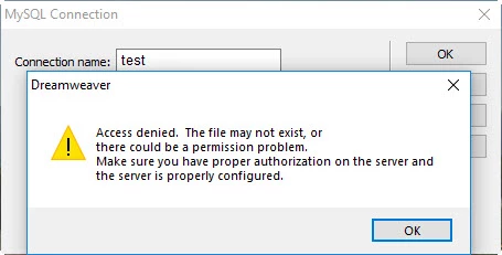 Dreamweaver issue creating MySQL connection..
