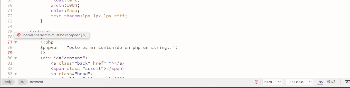 Error Special characters must be escaped: [ < ] php on Dreamweaver