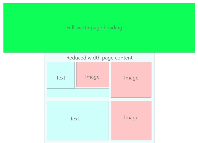 I'm thinking that most of my pages contents do not need full width in the body of each page. But I would like to have full-width page headings, perhaps even some full-width elements in a page that is limited to say 1200px wide. Something like this:
