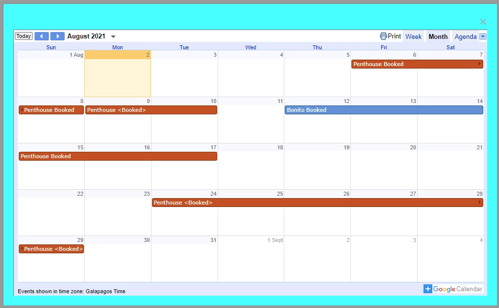 </html>And this is the modal popup (the big mess in the middle is the Google calendar link):