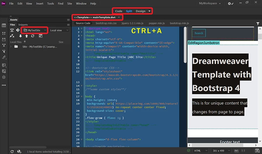 See Screenshot of Template.dwt in Dreamweaver CC 2021: