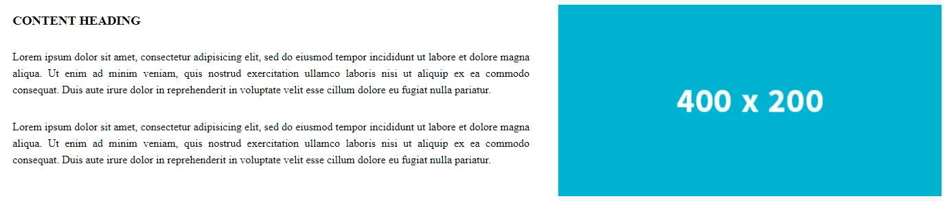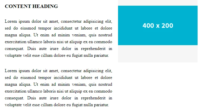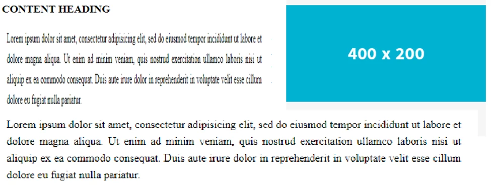 I am trying to wrap text around an image so that it wraps next to the image and below the image. This is especially desired for responsiveness \ resizing pages. Here is how one of the standard temaplates appears on a wide screen: