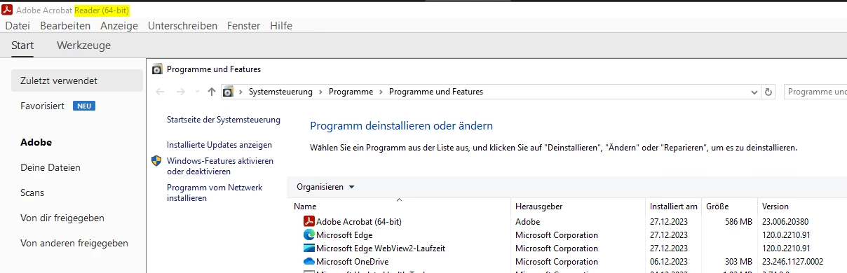 ... but this is not my question. where can i see if it adobe acrobat (reader) odr the adobe acrobat DC Standard