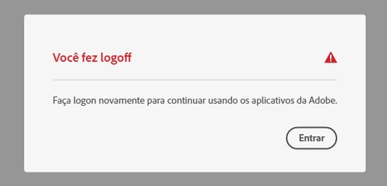 Não consigo efetuar o login no app Creative Cloud Desktop por que toda vez que eu clico em "entrar", aparece um popup dizendo "Você fez logoff! Faça logon novamente para continuar usando os aplicativos da Adobe", e as soluções mostradas no site da própria adobe não me ajudaram a resolver o problema.