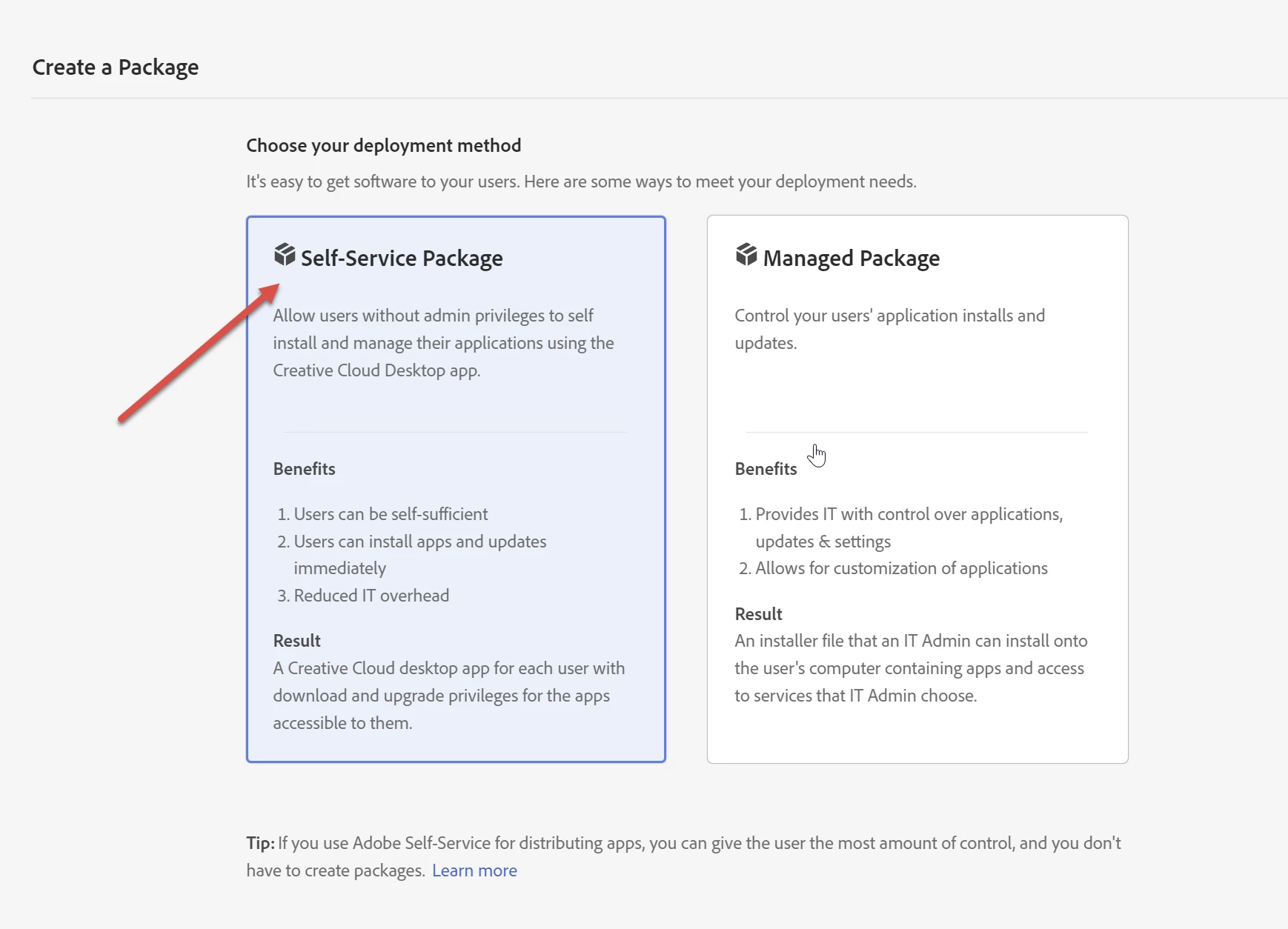 Using the Self-Service Package works fine for us: