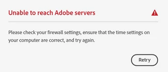 Unable to Reach Adobe Servers