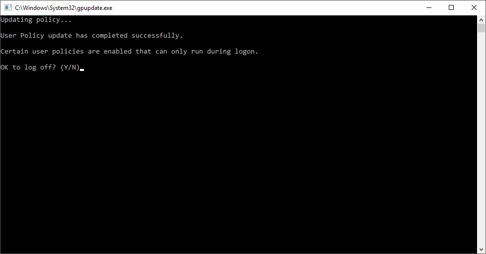 Updating Policy...User Policy has completed successfuly.