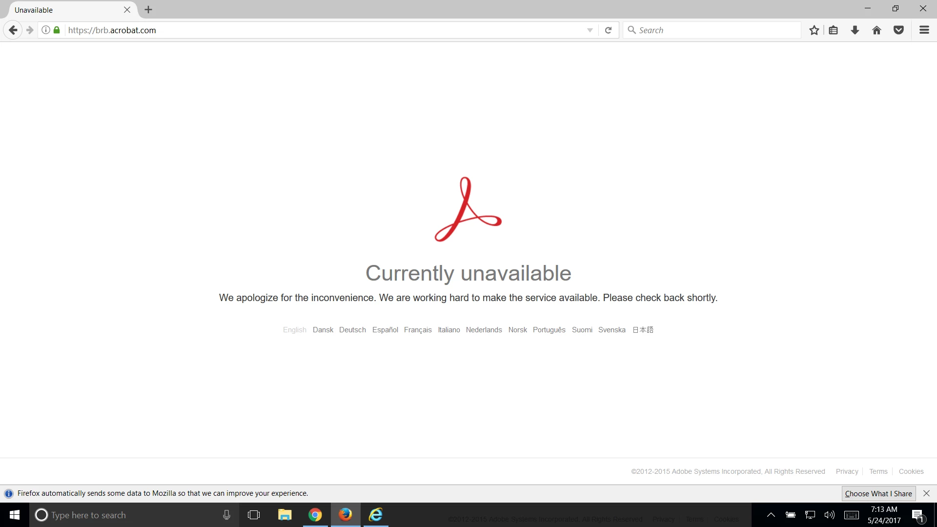 I send invitations to my users that require Acrobat Pro for their job responsibilities and lately I have gotten a "Currently unavailable" error after they setup their Adobe account and are ready to start the download.