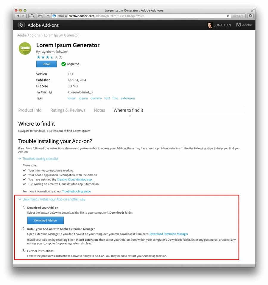 Just wanted to let you know that we just provided another way to install Add-ons, this is primarily if you encounter an install problem when using the Creative Cloud desktop app, then we now have an alternative way to install. We have also made it more discoverable. You can now find it in 2 places: