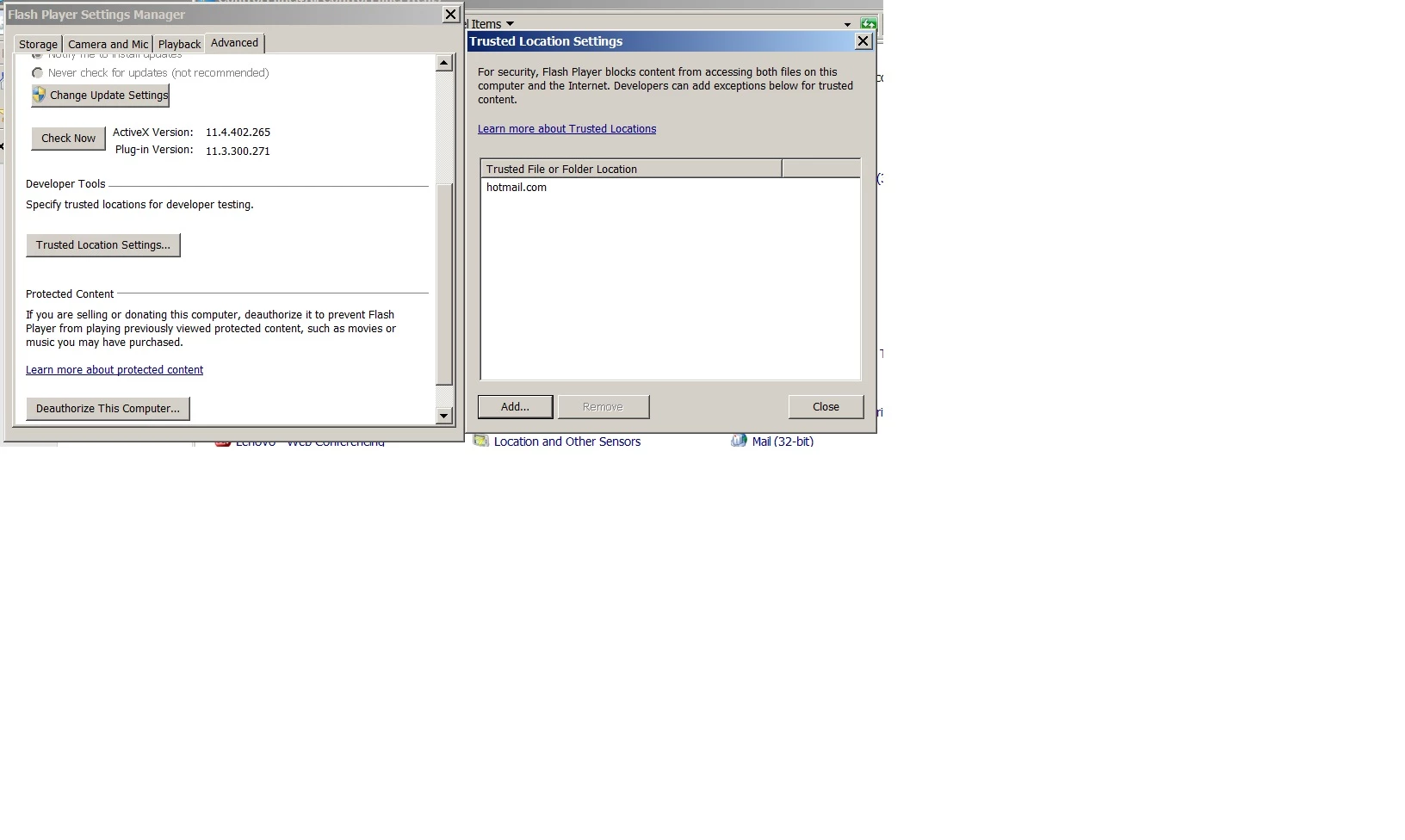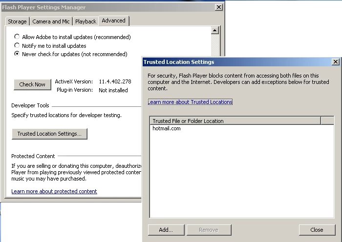 Adobe Flash Player has stopped a potentially unsafe operation @ Hotmai.com Sandboxed