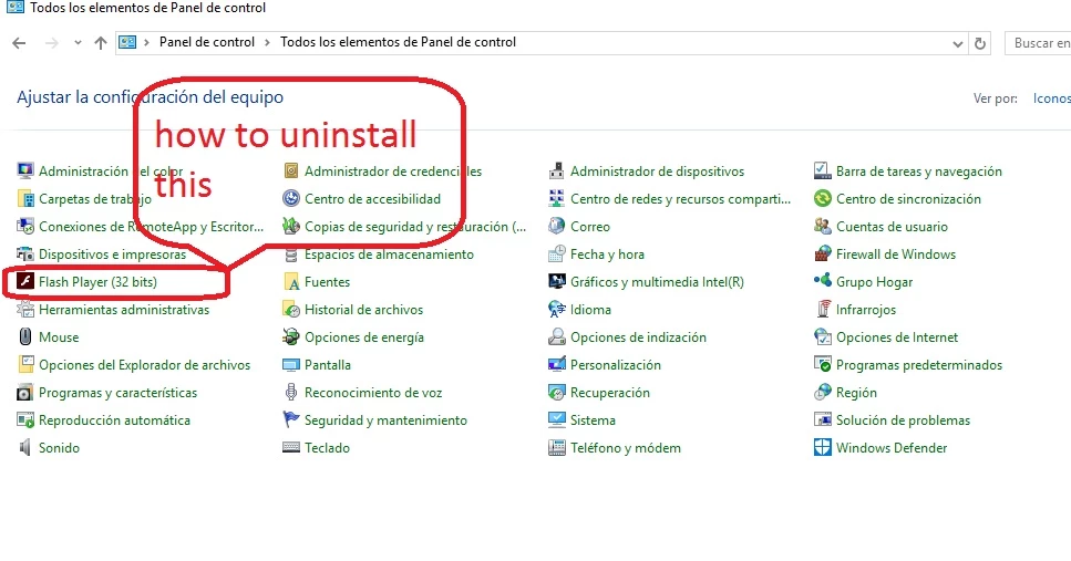 completely uninstall Configuration Manager flash player 32 bits ( windows 10 64 bits)