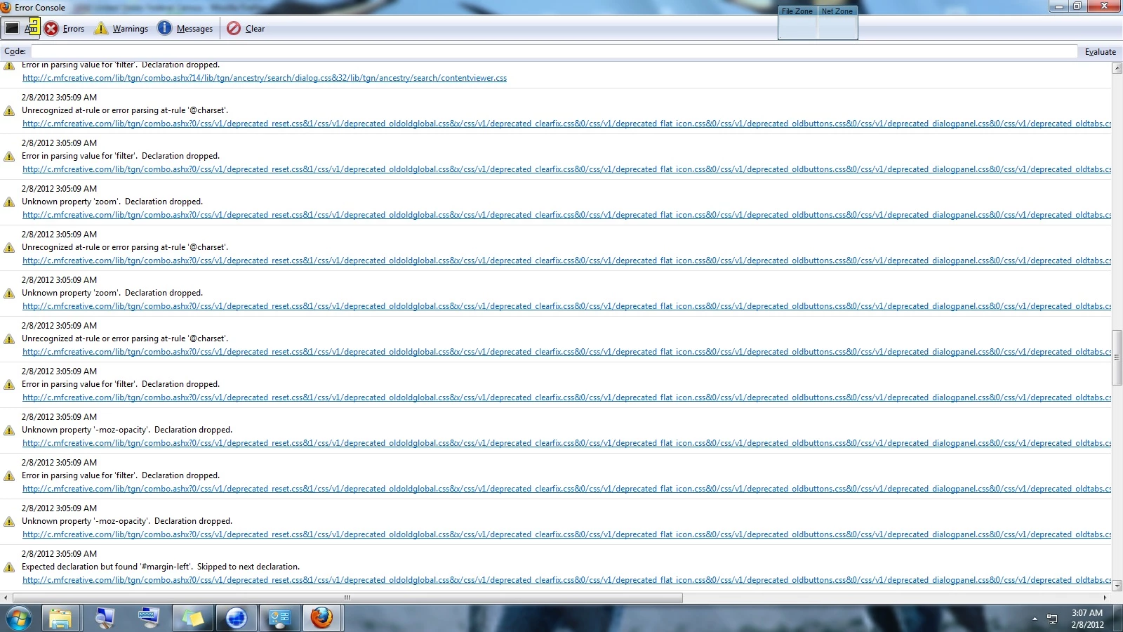 Attached are pictures of the error logs from the ancestry page.