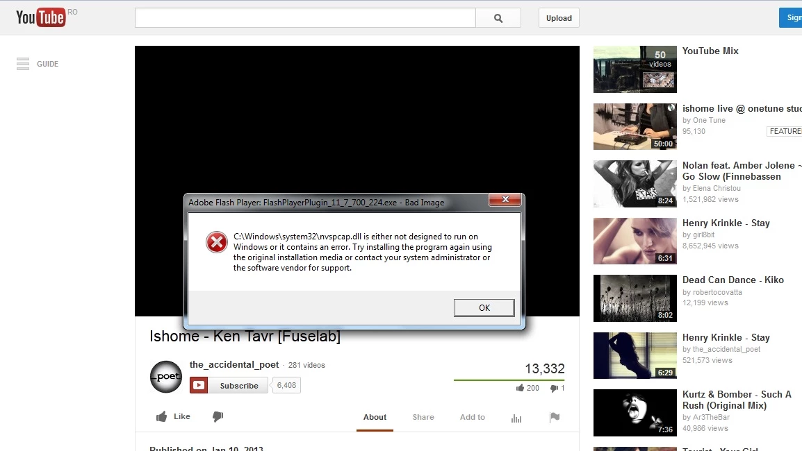 flash player bad image error