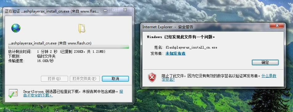 I reinstalled the system, then opened flash.cn with IE8, download and install the prompt as follows.