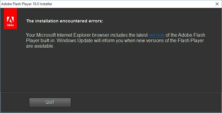 Hi, I am trying to install flash debugger 18 in Windows 10 which pre-installed windows 18.0.0.209.