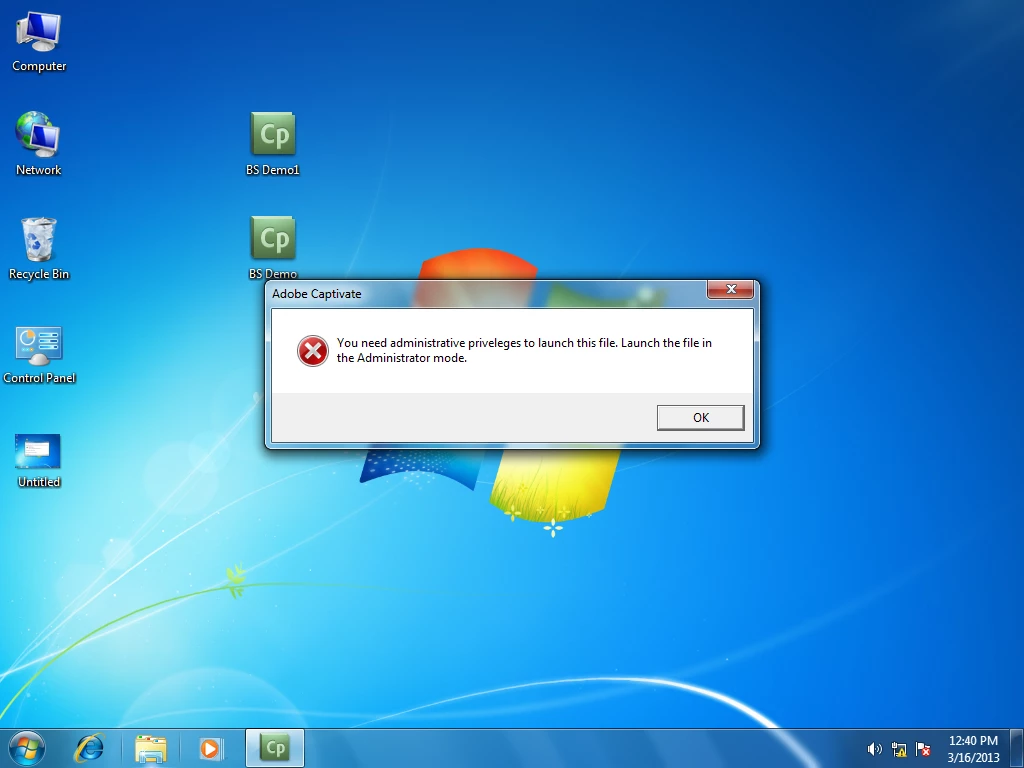 we have a flash .exe file generated from adobe_captivate5.5.I tried to run that file in windows 7.This error is coming
