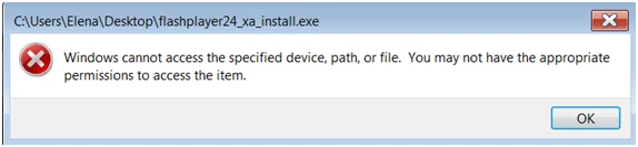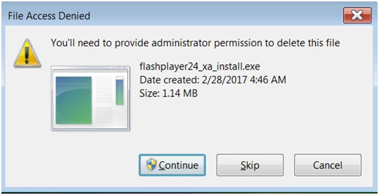 unable to delete flashplyer24_xa_install.exe from desktop