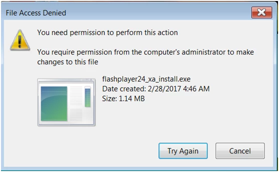 As I had installed the Adobe file on my personal Dell Win 7 laptop, and being the administrator for said laptop, I selected Continue.