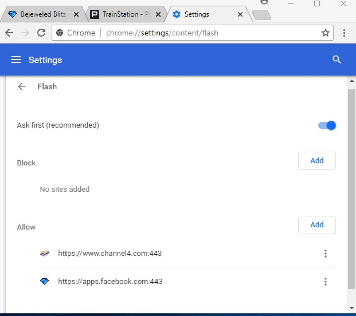 The three sites currently giving problems are channel4, bejewelled blitz (a FaceBook game) and TrainStation (a Pixel Federation game)