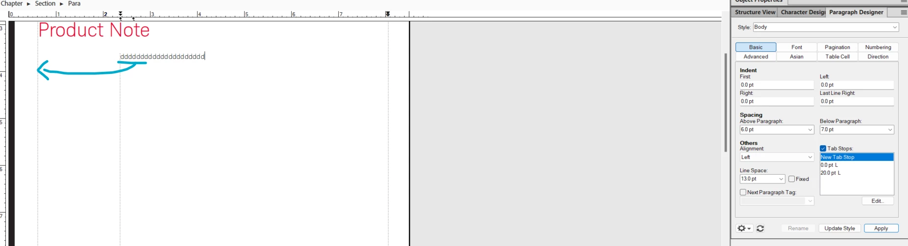 It looks like your page layout uses a space for side headings. If yes, you can change the paragraph properties in: