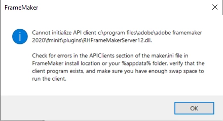 Cannot initializer API Client - RHFrameMakerServer12.dll